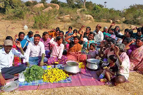 They spread out mats half-a-kilometre away from Chowdadenahalli village and are eating leafy vegetables and mangoes to satisfy their hunger. “We are eating spinach leaves and other raw vegetables. We want the Food and Supplies Minister to hear our voice and resolve this issue,” said Shashiraj, an activist from Chintamani in Kolar.