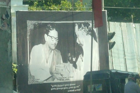 The pavements of a stretch of road from Nandanam to the Chennai Airport has been dotted with scores of banners portraying various stages of Karunanidhi’s political life. This comes despite DMK president MK Stalin warning cadres to not erect banners and flex boards that can cause inconvenience to the public.