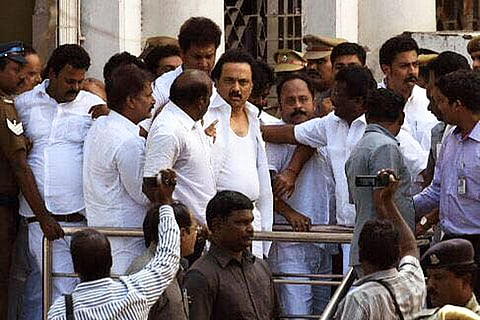 While the Speaker accused DMK MLAs of assaulting him, party Working President MK Stalin claimed that his MLAs were assaulted by the police.