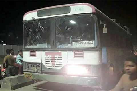 The incident took place in Tandur, Vikarabad district when the bus driver and conductor had stopped for a dinner break.