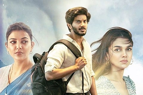 With that warning out of the way, let’s dive into our review of Tamil cinema’s latest romantic comedy starring Dulquer Salmaan (Yazhan), Aditi Rao Hydari (Mouna) and Kajal Aggarwal (Malarvizhi). The breezy movie begins with a literal storm when Yazhan and Mouna meet at a seaside restaurant. For a change, the heroine saves the hero, taking him to safety as strong winds threaten to blow them away.
