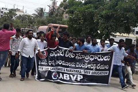 In April this year, the Telangana Vidyarthi Vedika (TVV) started an online petition on Change.org seeking a ban on Sri Chaitanya and Narayana junior colleges in the state of Telangana.