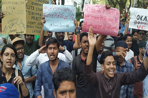 EFLU has an interdisciplinary system where MA students can directly apply for PhD without securing a JRF. The protesters claim that students from marginalised communities will be affected by this decision.