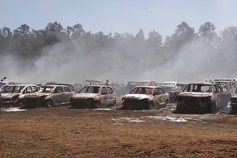 "My friend Ashwin and I ran to the spot where the fire broke out. We saw that the car parked at the end of the parking lot on the first row was on fire. Then there was an explosion and the fire just spread within seconds," Abhishek told TNM.