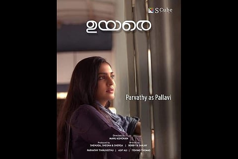 The first look poster of the Parvathy starrer Uyare has been released introducing the character she plays as Pallavi. In this film, she plays an air hostess who survives an acid attack. She looks different in long straight hair, in contrast to the curly short one the actor wears off screen.