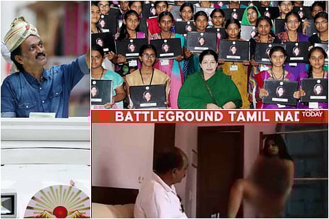 In Tamil media, there is always a cartoonist or two out there heaping misogynist insults at politicians to grab eyeballs. But more such sleaze-balls came to the fore this time, thanks to social media. From memes taking cheap barbs at women politicians, to crude link-ups, posters showing Sonia and Karunanidhi as bride and groom and leaked photos of politicians with either their lovers or dancing after enjoying a drink, everything was out. What’s more, AIADMK supporters online and even the official mouthpiece Jaya TV thought it was a good idea to shame a DMK candidate by releasing a video of him enjoying oral sex in private. Good job, folks.