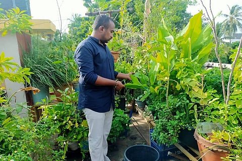 It was in 2017 that Mani Ratnam and his family built their own house in Andhra Pradesh's Machilipatnam town. Mani, a Chartered Accountant by profession, was passionate about gardening since childhood but could never find time for it. Once he moved into his new home, he started small with a rooftop garden in 2018 and within three years he has more than 50 varieties of medicinal plants, fruits and vegetables growing on his terrace. And what’s more, the plants are growing abundantly without the use of any chemical fertilisers.