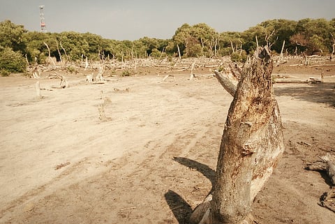 Water-logged areas with several patches of land in between abound in these forests. Look closely and you can spot hundreds of withered trees completely shorn off all branches with not even a leaf on them.