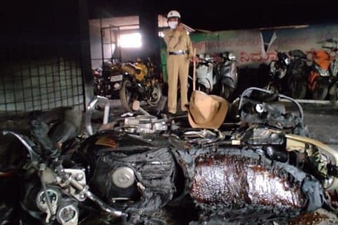 By 11 pm, rumours started spreading that the MLA’s nephew was being protected by the police at the KG Halli police station, 1.4 kilometres away. Over 500 people gathered within minutes, this time, visibly prepared to create large scale violence. The angry mob started attacking police vehicles too and notwithstanding the reinforcement that arrived at the police station, started torching vehicles outside the police station.
