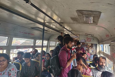 Speaking to TNM, HCU’s Students Union General Secretary, Gopi Swamy, said that around 60 to 80 students of the University gathered at the campus around 10 am on Thursday. “We hired an RTC bus and were on our way to join the protest at the Exhibition Grounds. Soon, the Gachibowli police boarded the bus and directed the bus driver to take the vehicle where they instructed to,” said Gopi Swamy.