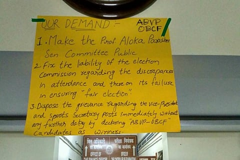 Amidst this crisis, ABVP on Friday protested at the administration building, accusing officials of laxity. They said that if the vice-president was disqualified for not meeting the eligibility criterium, it will only be fair if their candidate, who was a runner up in election, be instated as vice-president.