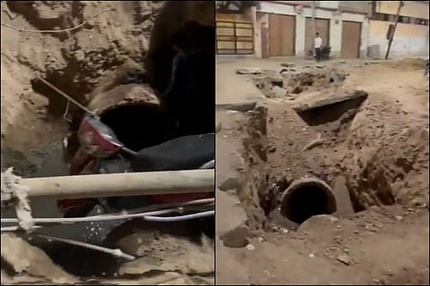 A man riding a two-wheeler fell into a deep pit in a road that was dug up at Dewan Devdi in the old city area of Hyderabad. The incident reportedly happened on the night of Tuesday, April 26. A Twitter user and TDP leader from Hyderabad, Mohd Ahmed, said the road opposite Crescent School was dug up around five months ago and has caused severe inconvenience to elderly people, women and children.