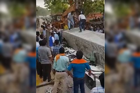 A video of a collapsed flyover that has crushed at least three cars and trapped people beneath it, has been widely shared on WhatsApp, claiming that a flyover in Balanagar, Hyderabad had collapsed. The news is however not true, clarified the Cyberabad police and Hyderabad Metropolitan Development Authority (HMDA) on Wednesday.