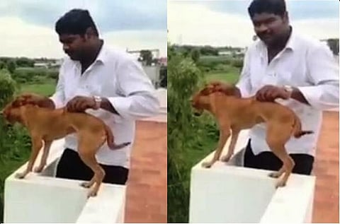 The video went viral on Monday and shows the dog shaking as the man poses for the camera and drops the dog down from the terrace. The video ends with the sound of the dog crying in pain.