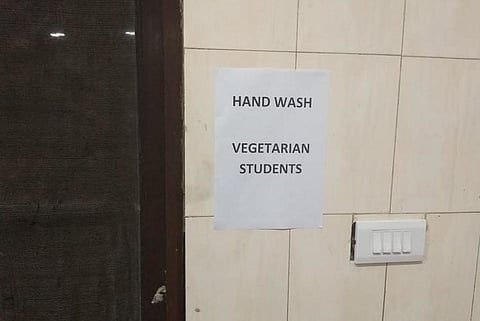 "It has been brought to attention that a certain poster detailing an area of wash basin to be earmarked for vegetarian students, was found in RRC mess, Himalaya. The caterer has been instructed to remove the poster immediately upon its discovery by the Mess Monitoring Committee (MMC).The same had been undertaken by the caterer in their own volition and was not a directive given by the Mess Monitoring Committee (MMC). In due course of time, action will be taken on the caterer after an enquiry on the incident," reads a statement issued by Nihal K, Hostel Affairs Secretary, IIT Madras."