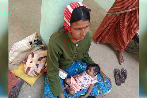 The women, hailing from Thappaganadoddi village, wait with their children for the doctor at the govt hospital