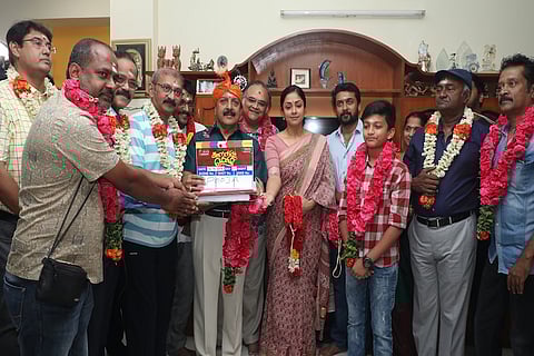 Titled Kaatrin Mozhi, the project officially went on the floors on June 4 following a customary puja which was attended by the entire cast and crew. Via a statement, the makers confirmed they're eyeing an October release. Jyothika's husband Suriya and father-in-law, yesteryear actor Sivakumar, attended the customary puja ceremony.
