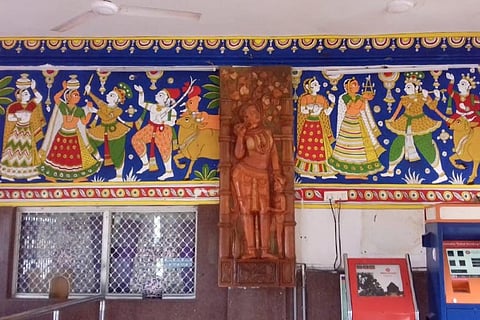 Draupadi, wearing a vivid green saree, prays to Krishna, his skin a beautiful blue, as Dushasana – whose attire sports tremendous detail – tries pulling at her clothes. This is just pieces of art that Mangalagiri station is now home too. With its makeover complete, it’s easy to mistake the station for an art gallery.