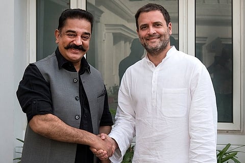 Actor turned politician Kamal Haasan met Congress party president Rahul Gandhi, in New Delhi on Wednesday.