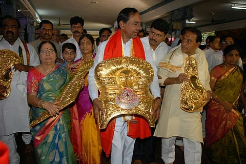 Last year, KCR had presented a 11.7kg gold crown worth over Rs 3 crore to Goddess Bhadrakali at Warangal, on the occasion of Durga Navratri.