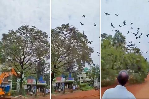 Riyas, the person who captured the incident on a video which went viral, said nobody reacted or tried to stop it when the tree was being cut. In the video, he clearly shows that many newly-hatched Indian cormorant chicks died when the tree fell.