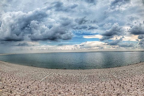 A clear blue sky, filled with white fluffy cumulus clouds whose reflection can be seen on the water in the reservoir: does this sound like one of Wordsworth’s poems? Well, this is how you would also describe the mesmerising view at the Pochammasagar Reservoir located in Markook mandal of Siddipet district, located around 50 km from Hyderabad. The sight of the blue sky and the blue water merging into the concrete bund far away is sure to leave you impressed.