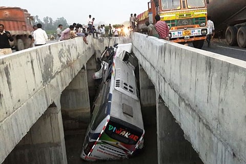 At least 11 people died and 30 people were injured after a bus travelling on the Hyderabad-Vijayawada highway fell into a culvert.