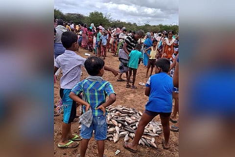 Speaking to TNM, Thangaswamy, who is responsible for the fish harvest, says, “The ancestors living in Keelathenkalam used to dig ponds to serve as a water source for the village and help farming. The ponds will be dug immediately after the monsoon and the aquatic life will begin for the year. For six months, the village will receive water from the pond and then, the water will begin to recede and disappear.”