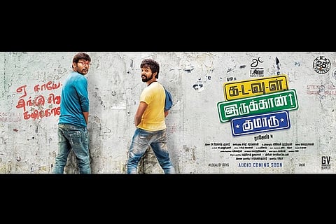 Here's the poster for Kadavul Irukaan Kumaru (2016) which has RJ Balaji and GV Prakash peeing on a wall in public in celebration of their bromance. The same film has a cringe-worthy comedy sequence that involves the two friends trying to find a place to defecate in the open.