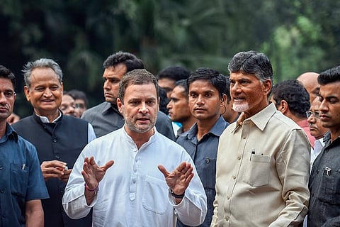 Andhra Pradesh Chief Minister N Chandrababu Naidu had a brief meeting with Congress President Rahul Gandhi in New Delhi on Wednesday morning, in what is being seen as a pre poll alliance discussion.