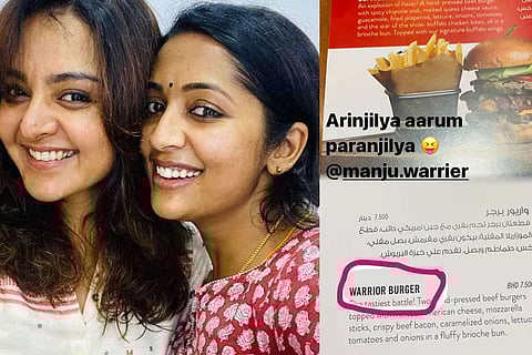 Those who recently viewed Navya Nair’s story on Instagram were in for a good laugh. The actor had posted a picture of the Warrior Burger from the restaurant chain TGI Friday’s, and captioned it: “Arinjillya aarum paranjilla, Manju Warrier,” which translates to “Didn’t know, nobody told me, Manju Warrier,” making a pun on the actor’s name. Navya Nair and Manju Warrier have been friends since they entered the Malayalam film industry, and continue to share a good rapport.