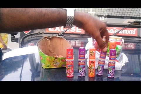 Large quantities of addictive fruit-flavoured mouth-sprays have been confiscated by state excise officials from shops located close to schools in Kerala.