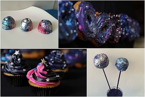 Diya Jojan from The Sugar Therapy in Bengaluru recently got on to the galaxy desserts bandwagon, and is using the technique to make everything from cake pops to donuts and cupcakes.