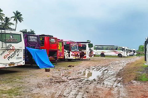 “Some buses here have two staff members while some others have three. In Jalangi and Domkal, both in West Bengal’s Murshidabad district, there are around 450 buses. They are parked in different grounds or barren lands. We face a lot of issues here,” Nazeer, owner and driver of Ervadi Travels from Kollam district who is stranded in Jalangi, tells TNM.