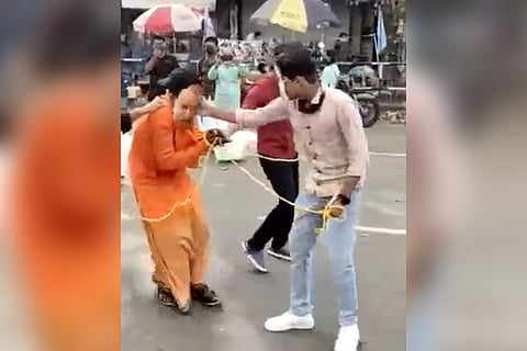 At the protest meeting organised by the CFI, a man dressed as Yogi Adityanath was being dragged by three men and had imitated an assault on him.