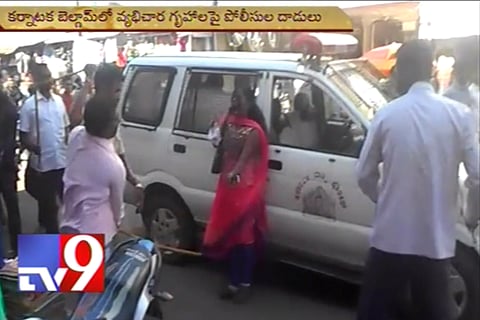 Kannada news channels and TV9 Telugu telecast reports about constables in Belagavi city assaulting women with lathis and even chasing after them in a market area on Friday. One portion of the video clipping shows a woman screaming in pain as a constable is beating her with a lathi after cornering her against the police patrol vehicle. Watch the video here: