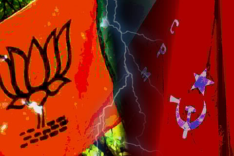 Even in the rural areas, CPI (M) and BJP workers engaged in violence by destroying party flags.