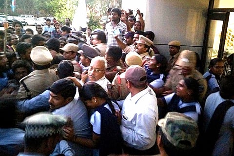 Speaking to the Times of India, TV Rao, Security Officer at UoH, said, "Students were peacefully protesting till 5.30pm. After that, they got agitated and tried to force their way into the meeting room and interrupt proceedings. We had to wrestle with them for over three hours and finally managed to send all the members out."