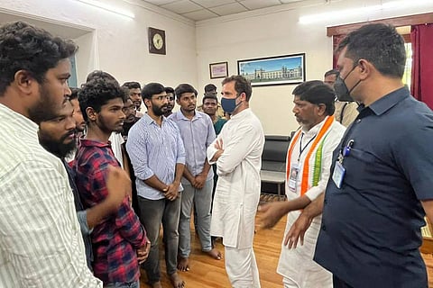 Rahul, who was accompanied by Congress Legislature Party (CLP) Mallu Bhatti Vikramarka, interacted with NSUI Telangana state president Balmoor Venkat and others. He enquired about the problems faced by students and youth. The MP posed for photographs with NSUI leaders.