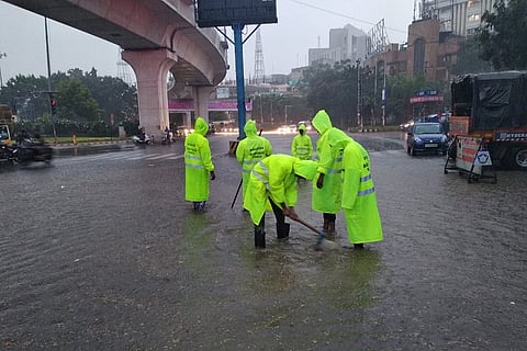 Officials of the Hyderabad Metropolitan Water Supply and Sewerage Board (HMWSSB) were also seen busy at work during the downpour.