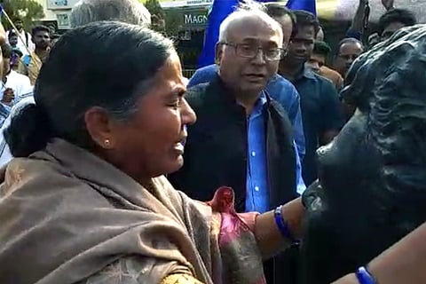 Two years since her son committed suicide, Radhika Vemula hugged the bust erected in his memory, unable to control her tears.