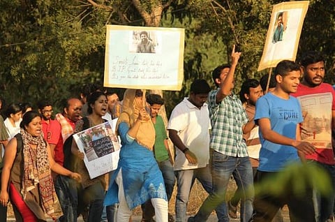 A part of the caption of the photos put up by Alex Abbasi on Facebook read: “Long live the Ambedkar Students Association! Long live Dalit Bahujan Solidarity! Long live the Spirit of Rohit Vemula, Rest in Power! Death to Brahminism! Justice to Rohit Vemula and all other fighting Dalit/Bahujan students!”