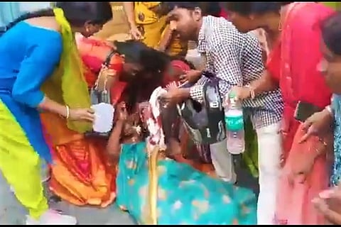 A video doing the rounds on social media shows the woman, crying in pain, as a large number of people are gathered around her, holding her nose with a cloth and standing by with water.