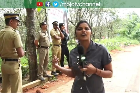 Kavitha, was clad in military fatigues and a helmet to protect herself from the crowd, that also had Hindutva activists, which has been staging violent protests for the past two days. She was accompanied by three other crew members from Mojo, including reporter Balakrishna and cameraperson Narasimha.