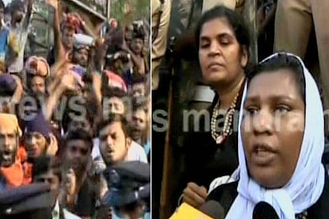 The women, Bindu and Kanakadurga, aged 42 and 44 respectively, were attempting to climb the hill shrine amid tight police security and protests. Unlike on Sunday, when the police refused to provide protection to the 11-member women group from the Manithi organisation in Tamil Nadu who had visited the temple, Bindu and Kanakadurga were provided heavy police escort. A team of 50 odd police personnel led by special officer Jayadev IPS led the women up until Chandranandan road - a narrow lane between Marakootam and Sannidhanam. But just a kilometre away from the Sannidhanam, the women were stopped in their tracks after protests grew bigger and several protestors blocked their way to the temple.
