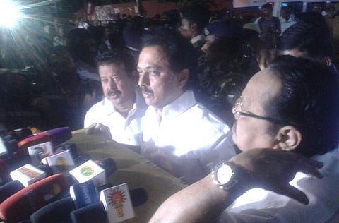 In a break from bitter rivalry that dominates Tamil Nadu’s politics, Leader of Opposition and DMK Treasurer MK Stalin visited Apollo Hospital in Chennai, where Chief Minister Jayalalithaa is admitted. Although Stalin was not able to meet the AIADMK supremo, he said he met Finance Minister O Panneerselvam and Health Minister Vijaya Bhaskar.