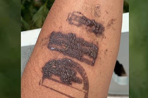 Questions were raised over the quality of ink used to stamp passengers landing at the Indira Gandhi International Airport in New Delhi after a senior Congress leader shared pictures of the ink smudging and causing what seemed to be an adverse allergic reaction on his skin. National Secretary and Spokesperson of the Indian National Congress Madhu Goud Yaskhi took to Twitter and tagged the Union Minister of Civil Aviation, tweeting, "Dear @HardeepSPuri, can you please look into the chemical being used at Delhi airport for stamping on passengers coming from abroad? Yesterday I was stamped at @DelhiAirport and this is how my hands look now."