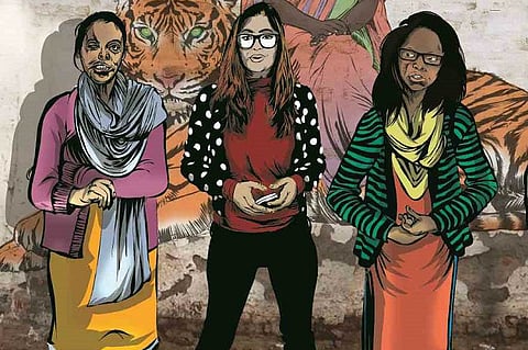 Like the first comic in the series, the second one also draws on mythological elements to further the story. Priya rides a tiger, which likens her otherwise mortal character to goddess Durga. The reason, explains Paromita, is that no story is complete without involving people.