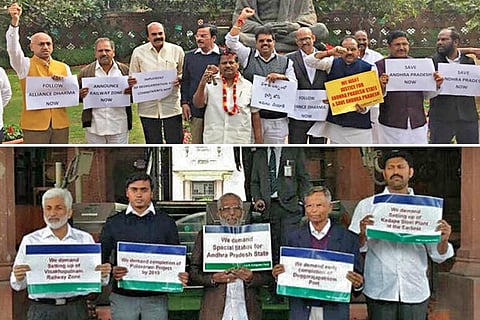 Another YSRCP MP, Vijaysai Reddy said, "The bifurcation promises remained just catch phrases and nothing has happened till date. The state waited for four years and not even one promise was implemented. Special category status, Durgarajpatnam port, Vizag-Chennai industrial corridor, petrochemical complex in Vizag are indispensable for the state, without which we will have to continue the protest.”