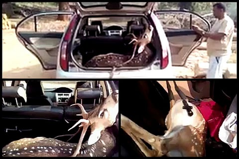On the night of March 19, two spotted deer were found dead in the trunk of a car in Palimela forest area in Telangana's Mahadevpur mandal.